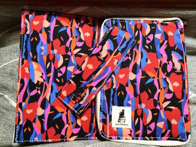 ここ1年くらい、電子書籍端末で本を読んでいたのだけど、昨日、仕事帰りにふらっと池袋の三省堂書店に寄って本の小物を見ていたら、素敵なブックカバーがあったので衝動買い。